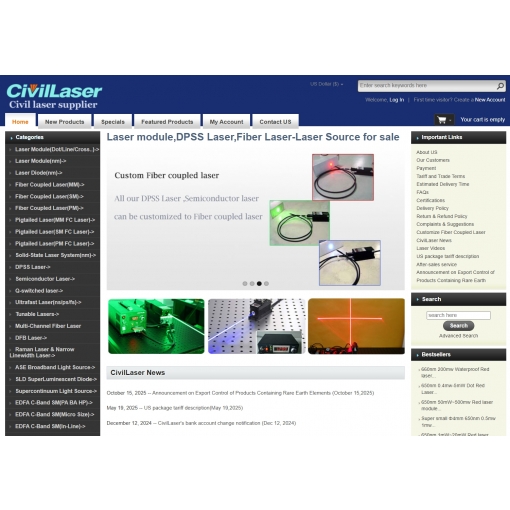 레이저 전분야에 주목하여 연구 개발생산판매를 일체화하는 하이테크 기업입니다. CivilLaser 레이저는 컴팩트한 구조작은 크기사용하기 쉬운 등 많은 이점이 있으며 현재 가장 매력적인 레이저 제품의 한 종류입니다. Civil Laser의 레이저 제품은 이미 전 세계 여러 지역에서 판매되고 있습니다.