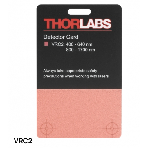 The VRC2 is a credit-card-sized detector card for viewing light in the 400 to 640 nm or the 800 to 1700 nm wavelength range. The lower front surface of this durable plastic card is photosensitive, made from a slow-fading phosphor, and enables the easy location of visible or near-infrared (NIR) light beams and focal points. Before using the card, it is necessary to charge the active region with visible light. As a consequence of the card needing to be charged to generate emission, during operation the user must move the position of the incident light spot around the active region to maintain the intensity of the excited emission.
