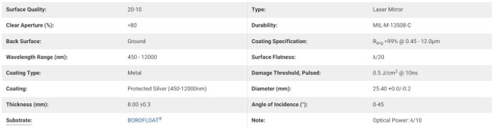 25.4mm Dia. 450 - 12000 nm, Silver, Precision Broadband Laser Mirror